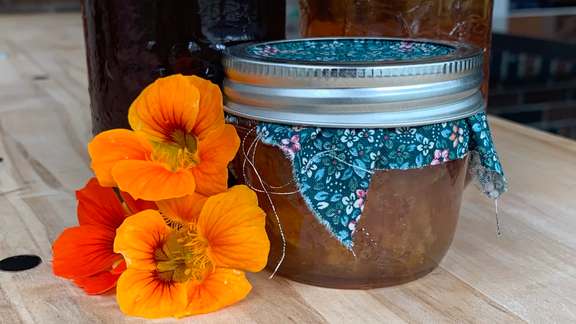 Cook ginger, garlic, onions, and apples, until the onions are translucent.