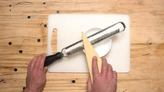 Reduce heat to low and add Grana Padano, stirring and tossing with tongs until melted.