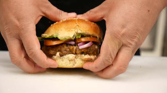 Insert the thermometer into the very centre of the burger, if the temperature is 160°F, take them off. Otherwise continue to cook the burgers, flipping every minute, until they reach 160°F. Once they are removed from the heat, allow them to rest for 2 minutes.