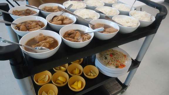 Preheat a large pot over medium heat with canola oil. Sear the chicken thighs skin side down for 2 – 3 minutes until golden brown then remove from pot and set aside. Add soy sauce, garlic and vinegar to the pot and cook, stirring constantly for 1 minute. Return the chicken to the pot, then add bay leaves and peppercorns. Add enough water to just cover the chicken and cover with a lid. Simmer until the chicken is just cooked, remove chicken and the lid and reduce sauce. Serve over rice.