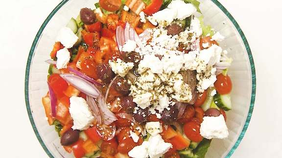 Tear the mozzarella into bite size pieces and then gently fold into the salad, leaving some to top for garnish.
