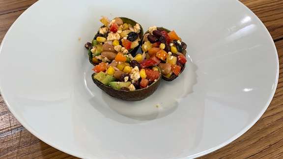 Cut the avocados in half, and remove the pit. Scoop out the avocado flesh, and dice the avocado.