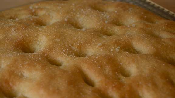 Leave the dough in a warm spot to proof for another 30 minutes. Sprinkle it with flaky salt and put it into the oven for about 25 minutes or until the top of the focaccia is a nice golden brown. Let cool preferably on a wire rack.