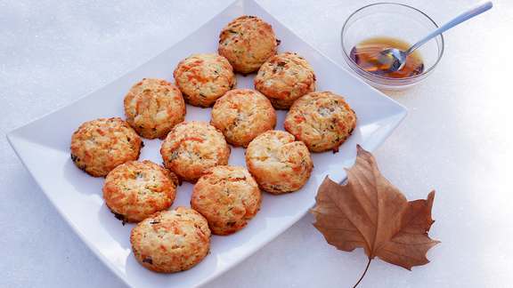 Melt together 2 tablespoons of butter with maple syrup and bush the tops of the biscuits and chill them for 15 minutes.