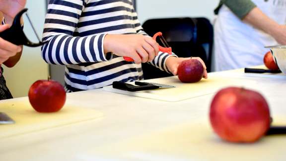 Cook the apples over medium heat for about 15 minutes, until the apples are softened but still holding their shape.