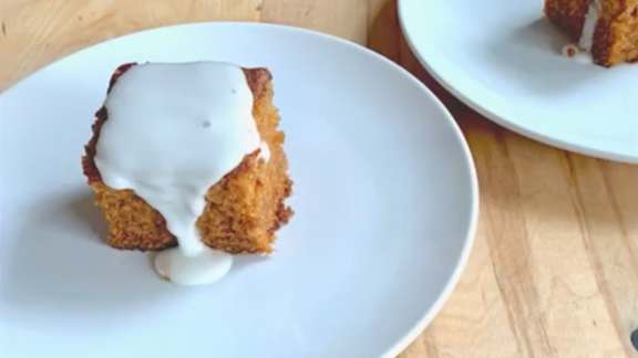 Sift powdered sugar and spices into a bowl. Whisk in lemon juice and mix until smooth, adding more lemon juice by the teaspoon if too thick. Drizzle diagonally over cake using a spoon or fork. Let icing dry before serving.