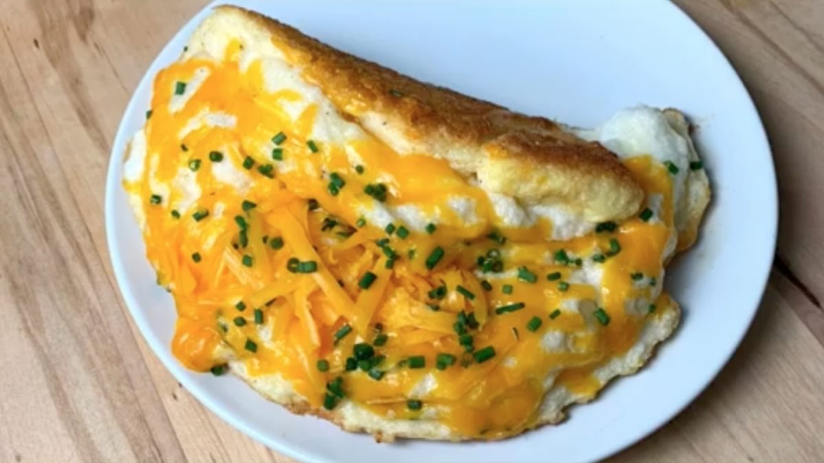 Gently fold the egg whites into the yolks, â…“ of the mixture at a time, until the mixture is mixed together well. If using the cheese or the chives, fold them in now as well.