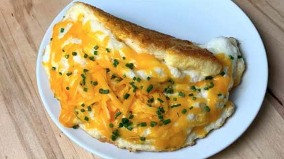 Carefully slide the omelette out of the pan, and fold it in half on a plate. Serve with maple syrup if you would like a sweet omelette.