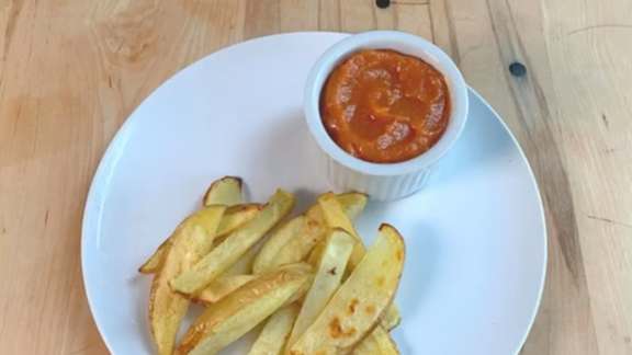 Strain the ketchup through a fine mesh strainer back into a pot.