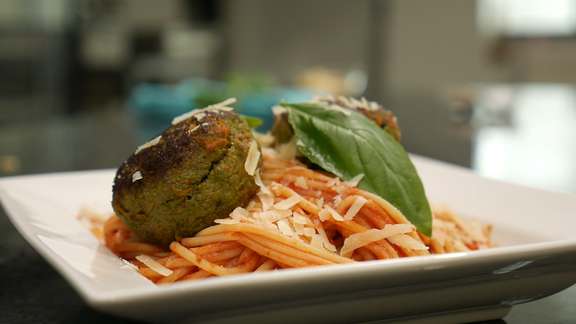 Serve immediately and enjoy a healthy and flavourful twist on spaghetti and meatballs!